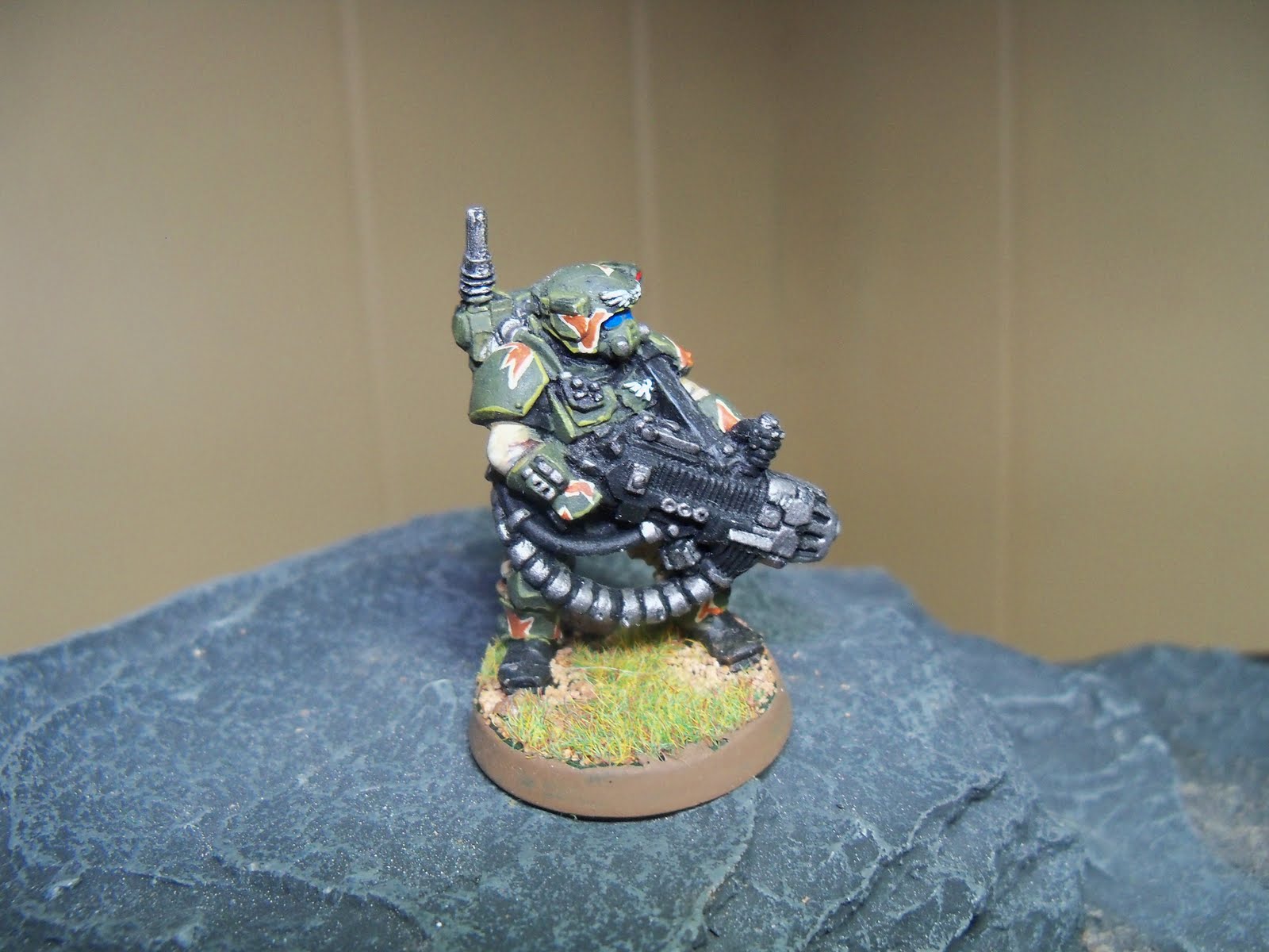 This soldier is carrying a meltagun. I forget the difference in game terms between the plasma gun and the meltagun; but, it looks cool. Reminds me of the squad machinegun - he's the guy I turn to if I need to put down a lot fire in a hurry.
